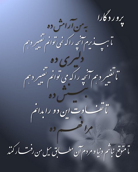 خدا یا من چیزی نمیبینم آینده پنهان است ولی آسوده ام، چون تو را می بینم و تو همه چیز را . . .